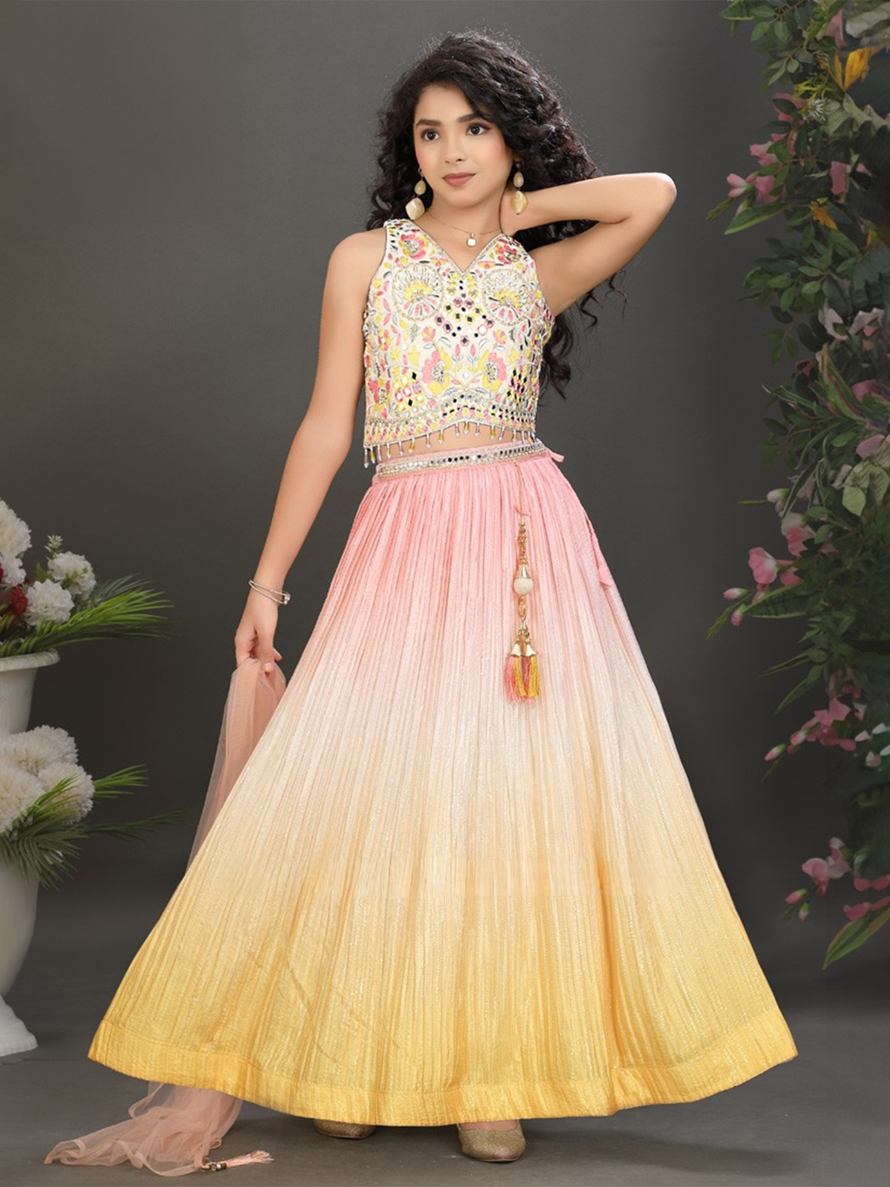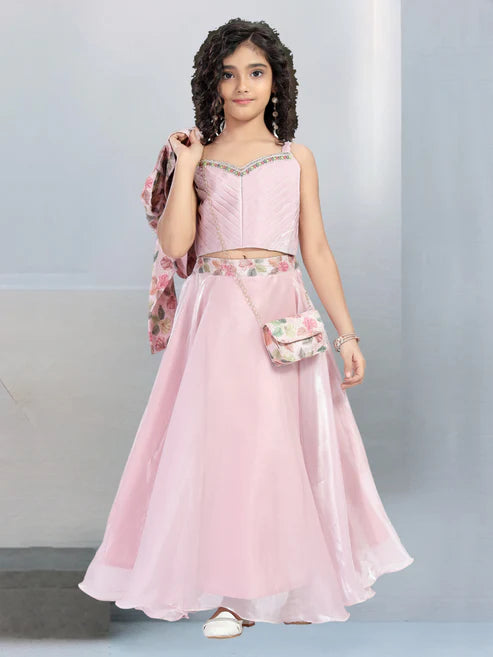 Blush Pink Girls Party Gown with Ruffled Bodice – Princess Dress