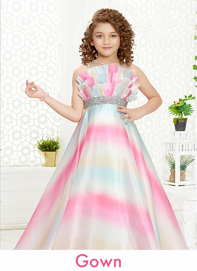Rainbow Pastel One-Shoulder Gown for Girls – Party Wear Dress